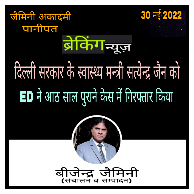 दिल्ली सरकार के स्वास्थ्य मन्त्री गिरफ्तार