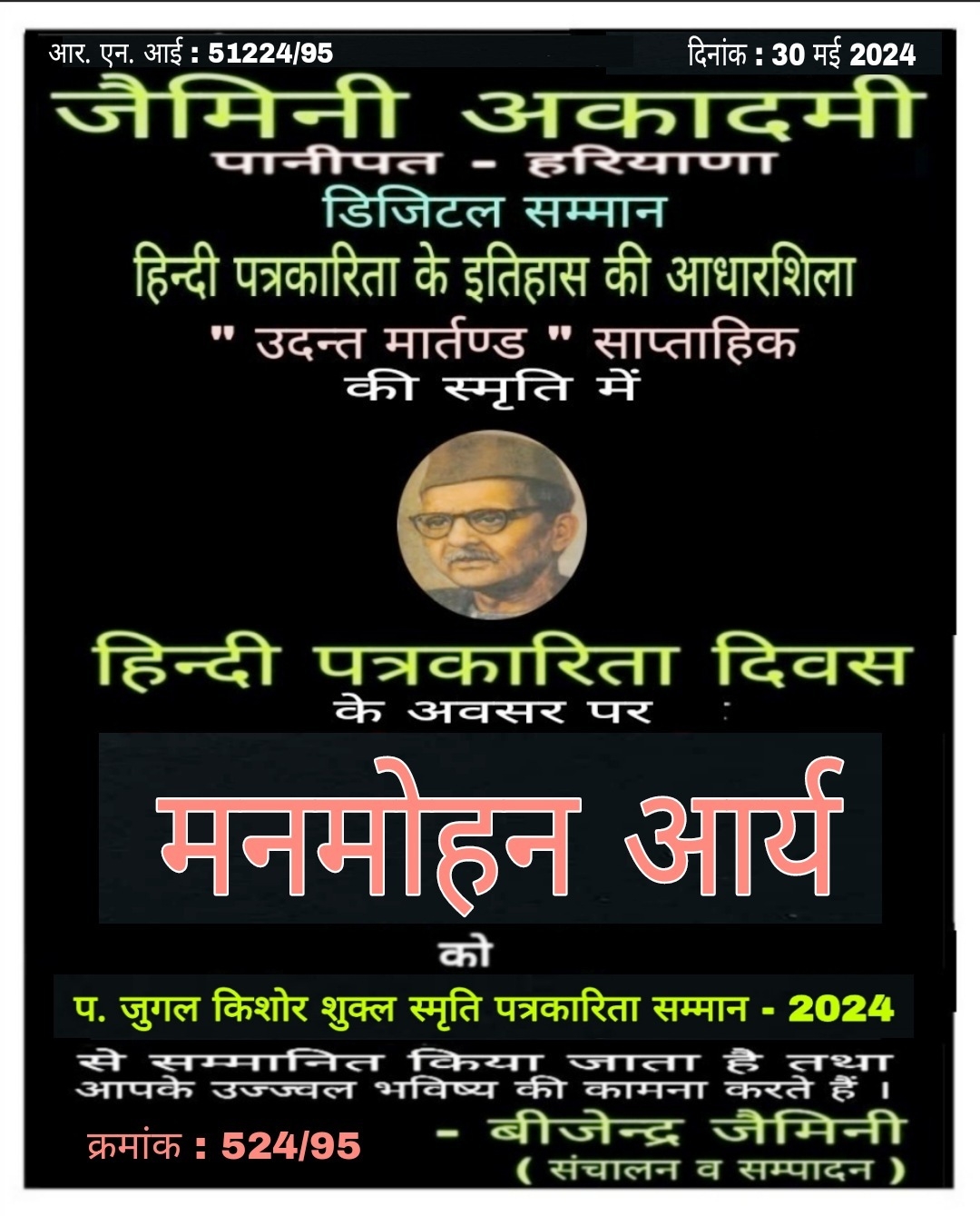 इसी कड़ी में हिन्दी पत्रकारिता दिवस - 2024 का ऑनलाइन कार्यक्रम रखा है । फिलहाल सभी के डिजिटल सम्मान पेश हैं : -