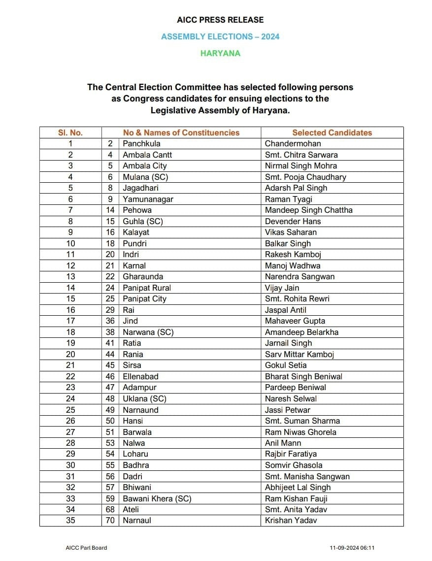 काग्रेंस की जारी लिस्ट