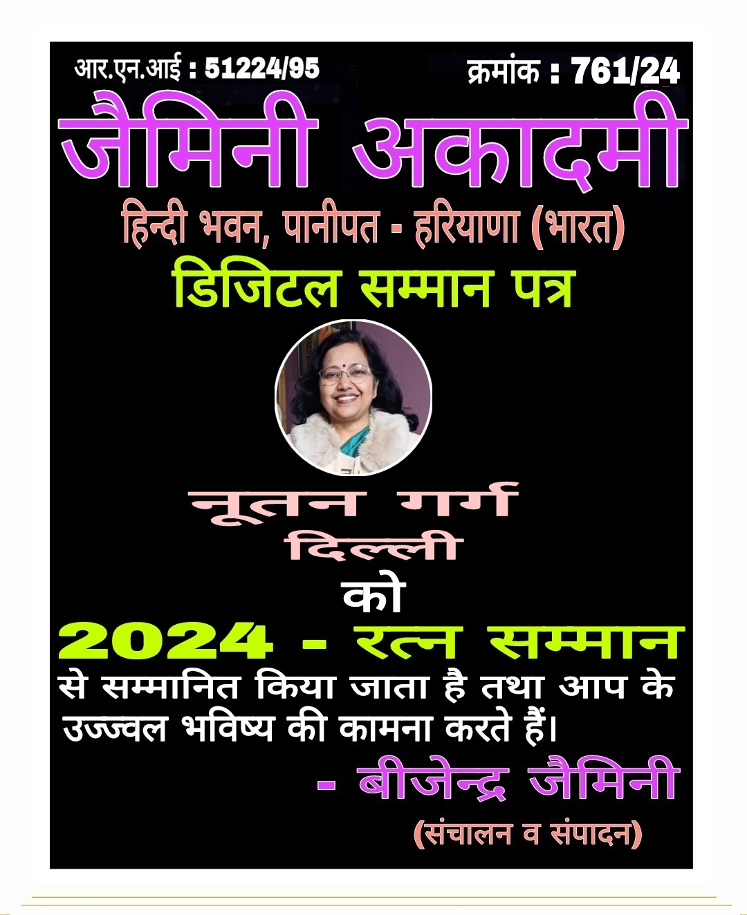 2020 से शुरू हुईं श्रृंखला ने आज अपना विस्तृत मुकाम हासिल किया है। जिसे " रत्न सम्मान " श्रृंखला कहां जाता है यानि 2020 - रत्न सम्मान, 2021 - रत्न सम्मान, 2022 - रत्न सम्मान, 2023 - रत्न सम्मान के बाद 2024- रत्न सम्मान पेश है। परन्तु इस बार कुछ विशेष नियम का पालन किया गया है। फेसबुक पर पोस्ट डाली गई कि विभिन्न क्षेत्रों के विद्वानों से जीवन परिचय व अपना फोटो WhatsApp पर भेजने की अपील की गई। जिसके बाद विभिन्न प्रकार के परिचय प्राप्त हुए। जो आज भी आ रहें हैं। काफी मेहनत के बाद 101 को " 2024 - रत्न सम्मान " देने को डिजिटल अन्तिम रूप दिया गया। जो आप के सामने पेश है :-